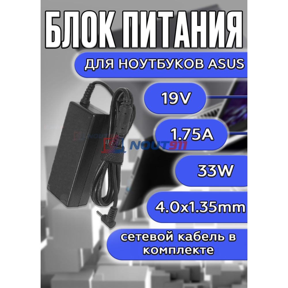 Описание товара: Зарядка для ноутбука Asus 19V 1.75A 33W 4,0x1,35mm (ADP-65DB), HC/OEM