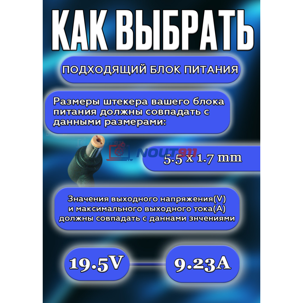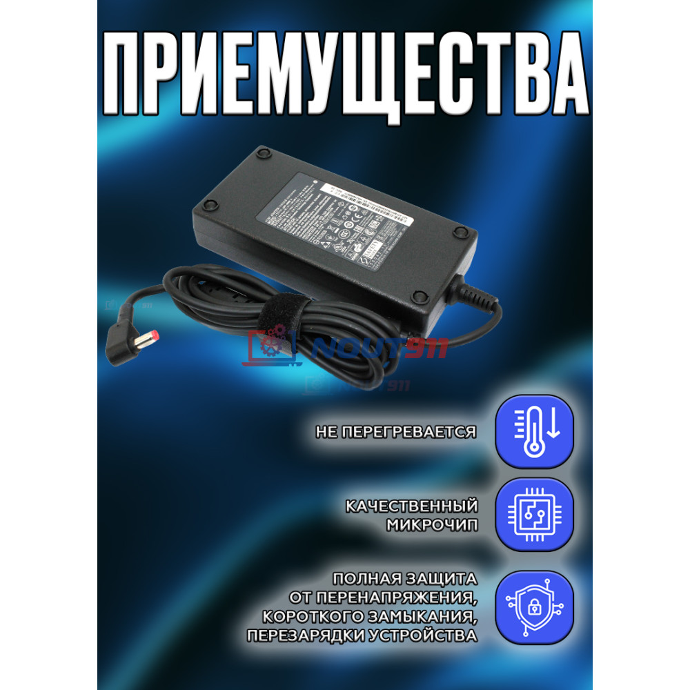 Высокая мощность и совместимость: С мощностью в 180 Вт и выходным напряжением 19.5 В, это устройство идеально подходит для питания современных ноутбуков Acer, обеспечивая стабильную работу без перегрева и перебоев.