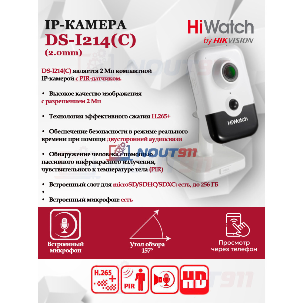 IP Камера HiWatch DS-I214(С) (2.0mm): Идеальный выбор для внутреннего наблюдения