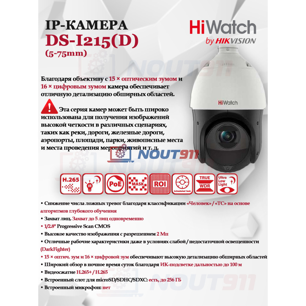 HiWatch DS-I215(D) предлагает усовершенствованные функции видеонаблюдения, которые помогут вам оставаться уверенными в безопасности вашего окружения. Она обеспечивает высокое качество картинки и простоту интеграции в существующие системы благодаря поддержке таких сетевых протоколов, как IPv4/IPv6, HTTP, FTP, и многих других. Поднимите уровень вашей системы безопасности с PTZ IP камерой от HiWatch, где надежность и инновации идут рука об руку.