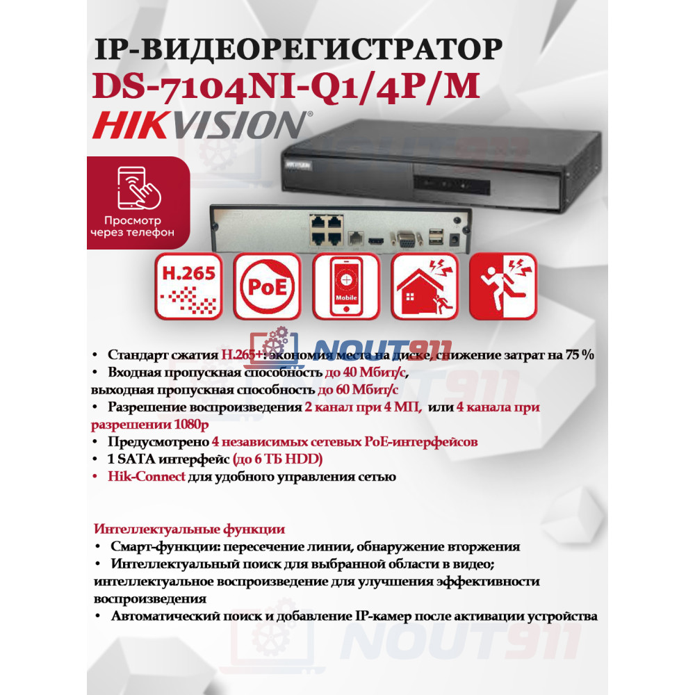 IP Видеорегистратор Hikvision DS-7104NI-Q1/4P/M(D) — это выбор профессионалов, которым важны качество, надежность и простота эксплуатации. С данным устройством безопасность вашего объекта будет всегда под надежной защитой. Убедитесь самостоятельно в превосходных характеристиках и возможностях этого видеорегистратора, выбрав Hikvision для вашего видеонаблюдения.