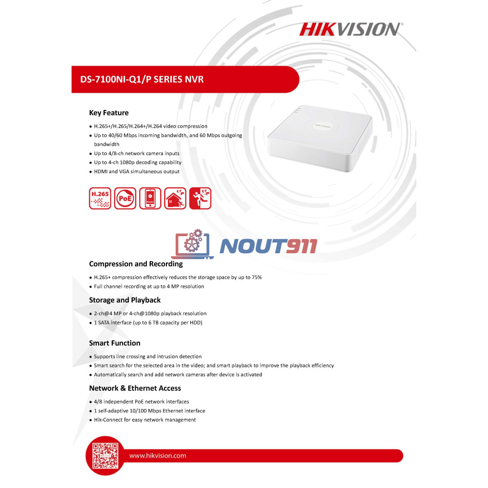 Позаботьтесь о безопасности вашей собственности с IP видеорегистратором Hikvision DS-7108NI-Q1/8P(D). Разработанный для интеграции с максимальной эффективностью, этот сетевой видеорегистратор (NVR) от известного бренда Hikvision (Хиквижн) обеспечивает высокое качество съемки и надежность благодаря множеству уникальных характеристик и функций.