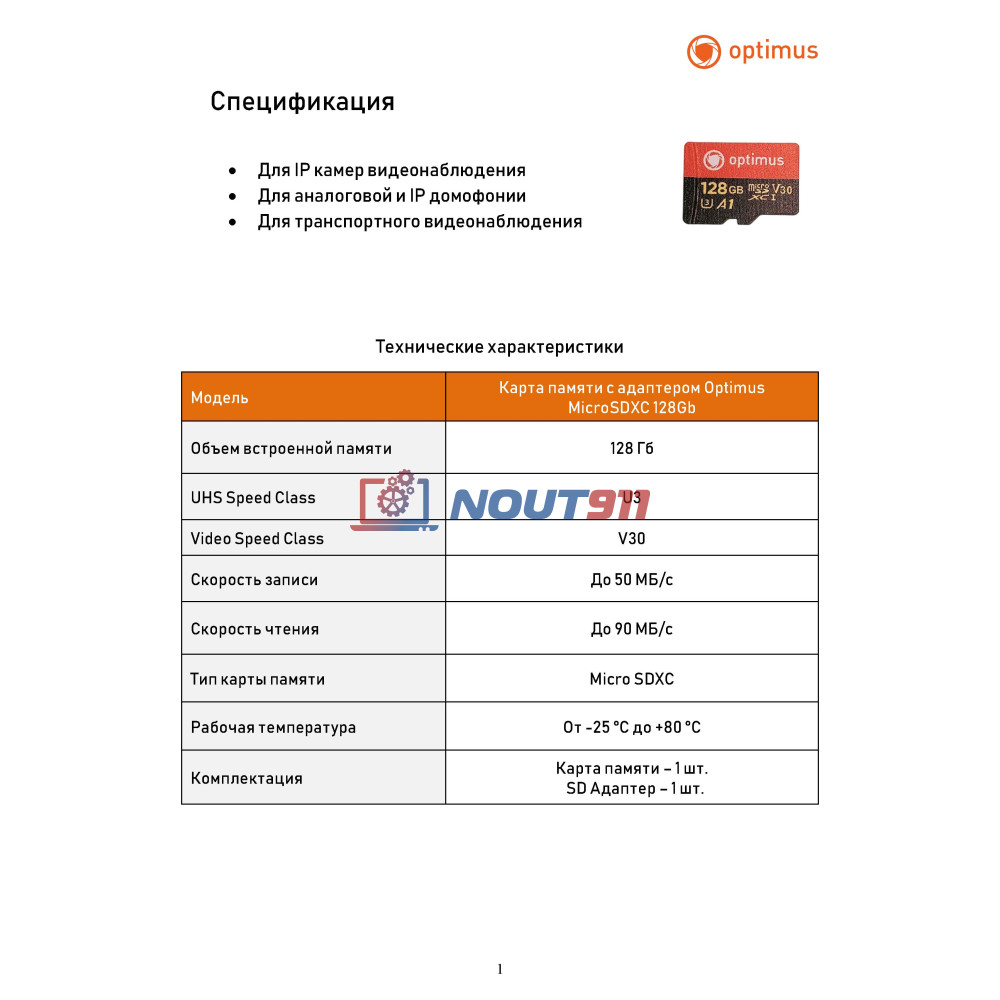 Карта памяти Optimus MicroSDXC 128Gb с адаптером: максимальная производительность для систем видеонаблюдения