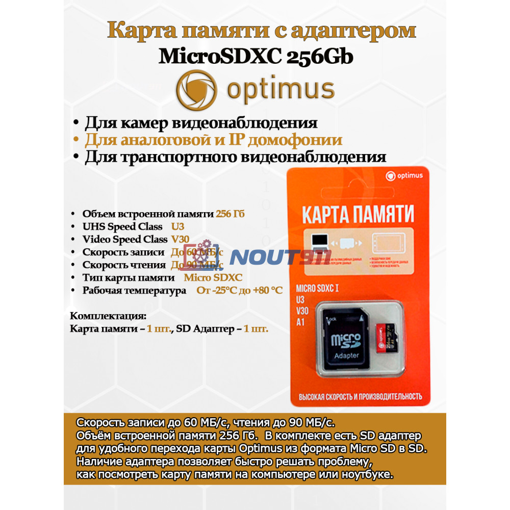 Карта памяти Optimus MicroSDXC 256Gb с адаптером: идеальный выбор для видеонаблюдения