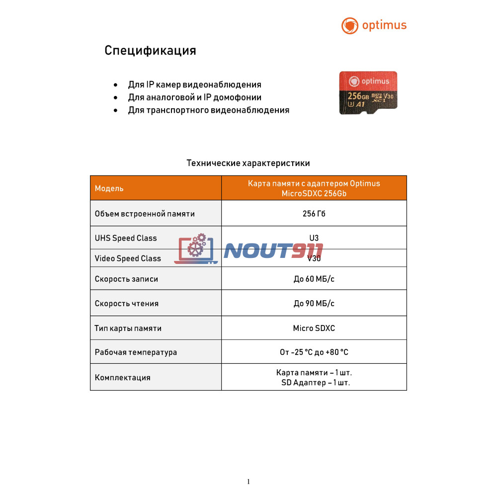 Optimus MicroSDXC 256Gb – это уникальная возможность улучшить и усилить работу систем видеонаблюдения. Доверьте свои данные надежному устройству и обеспечьте безопасность с оптимальным решением уже сегодня!