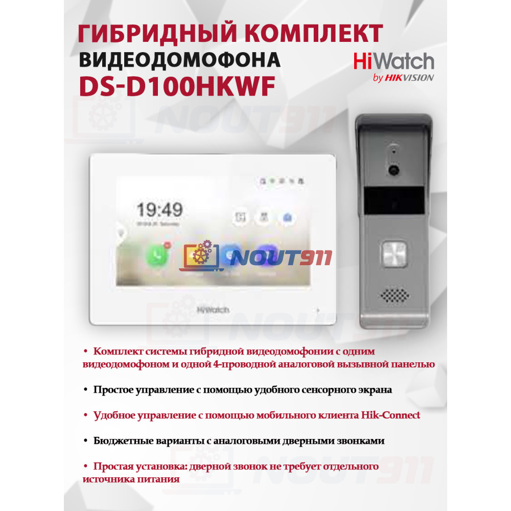 Комплект гибридного видеодомофона HiWatch DS-D100HKWF