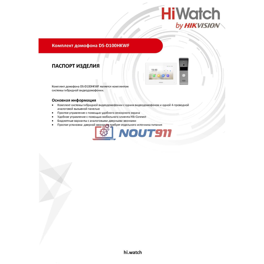 Комплект гибридного видеодомофона HiWatch DS-D100HKWF представляет собой идеальное решение для обеспечения безопасности и комфорта вашего дома или офиса. Превосходные характеристики этого устройства обеспечивают надежную работу в различных условиях, предлагая новейшие технологии в области видеонаблюдения и контроля доступа.