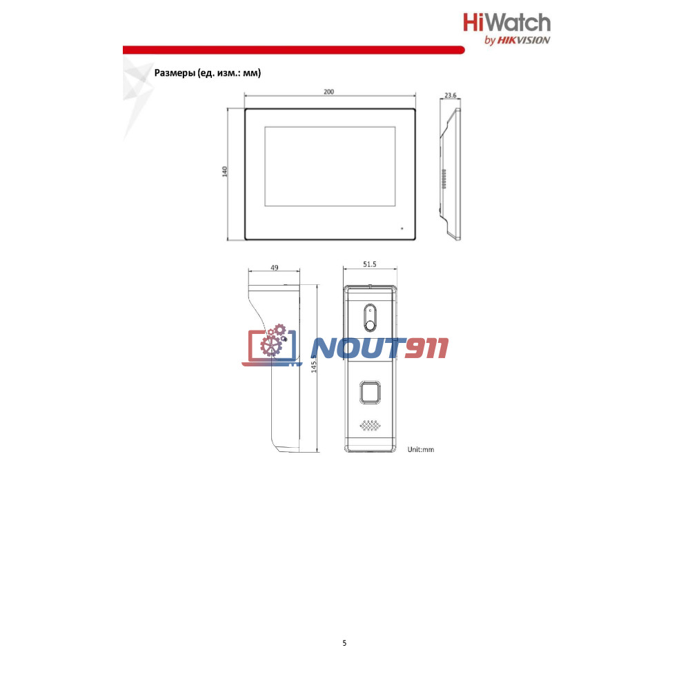 - Разрешение видеодомофона: 1024 × 600