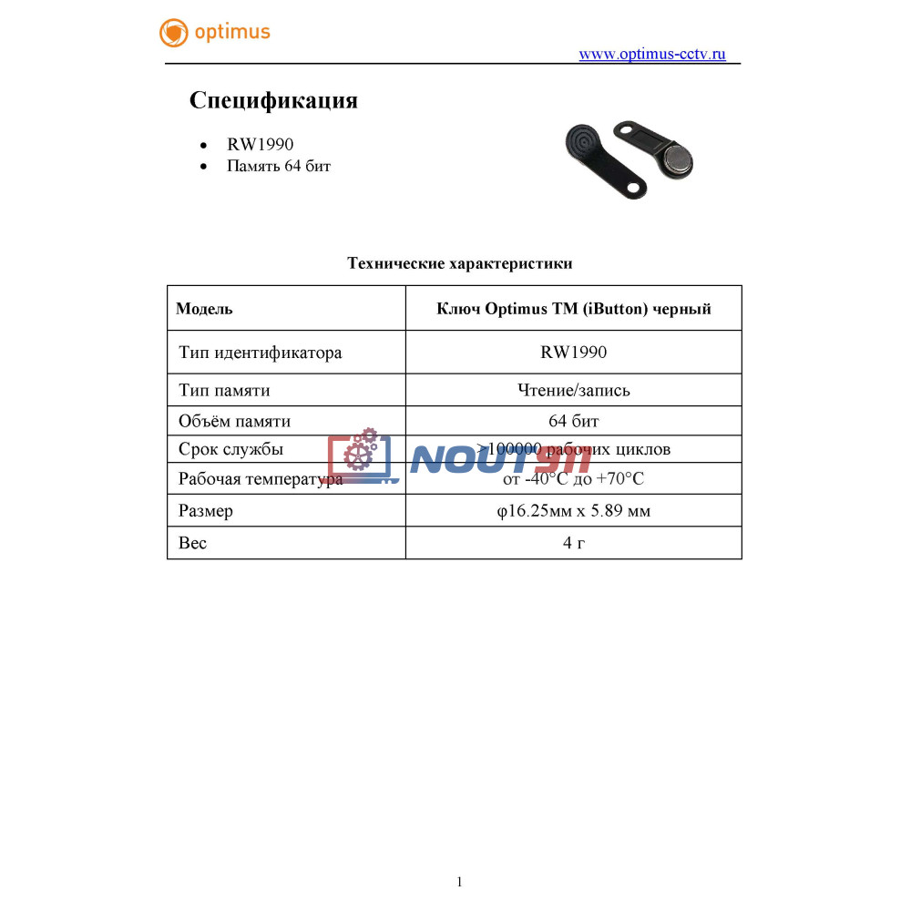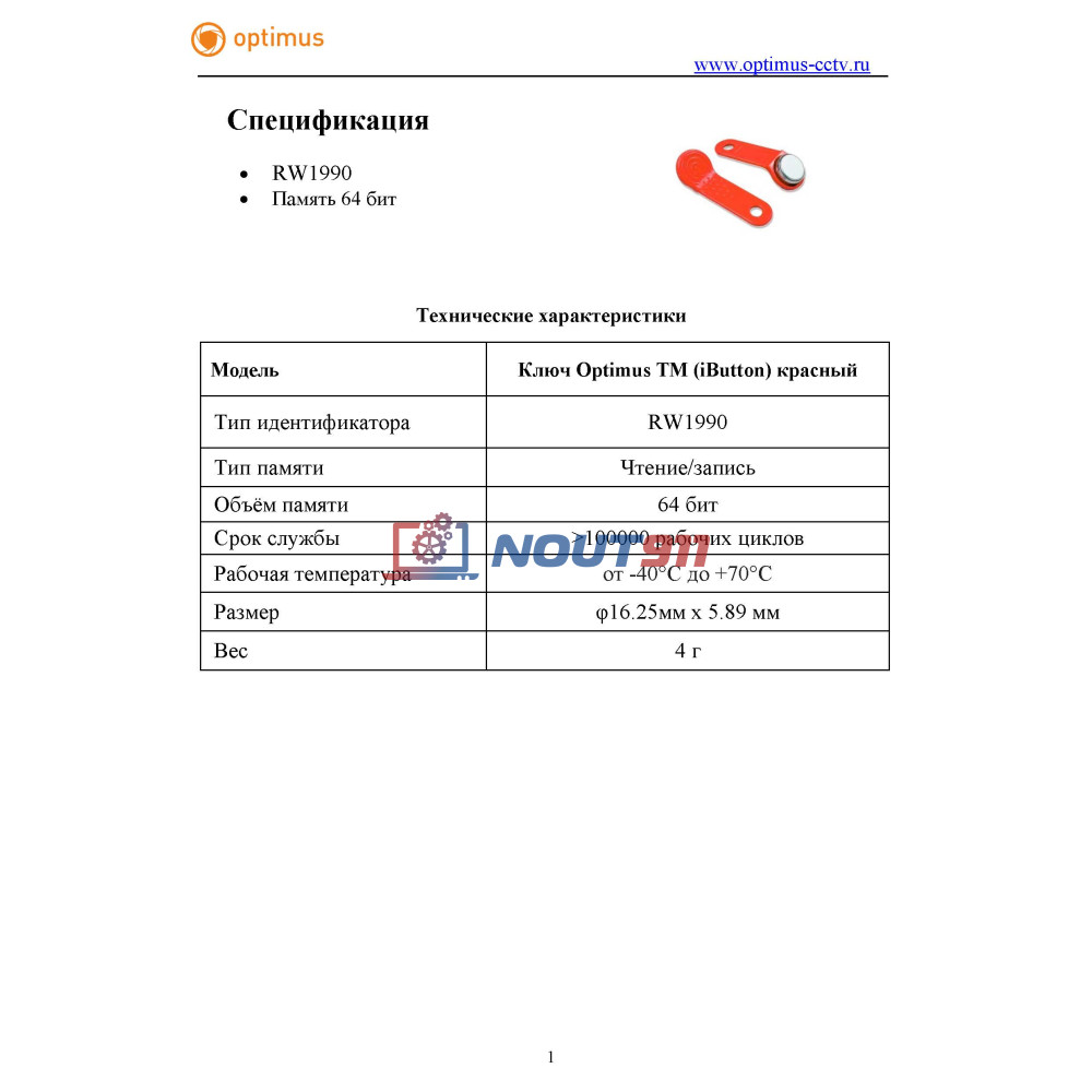 - Ключ Optimus ТМ (iButton) красный: 1 шт.