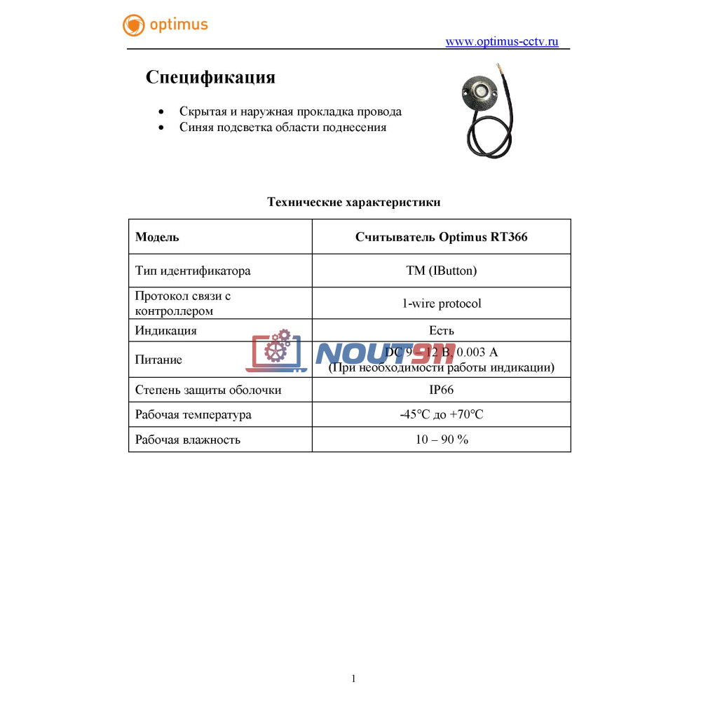 - Считыватель Optimus RT366: 1 шт.