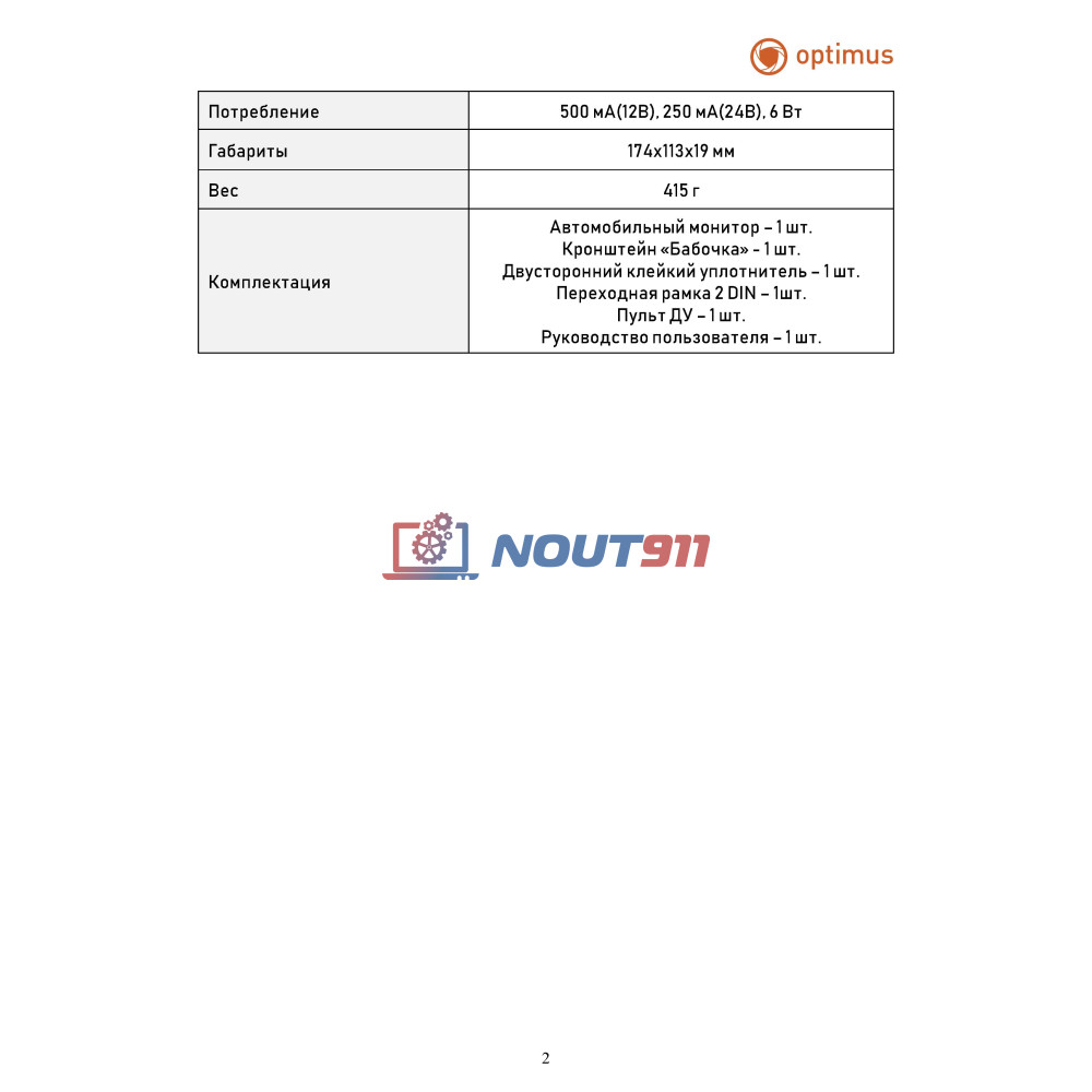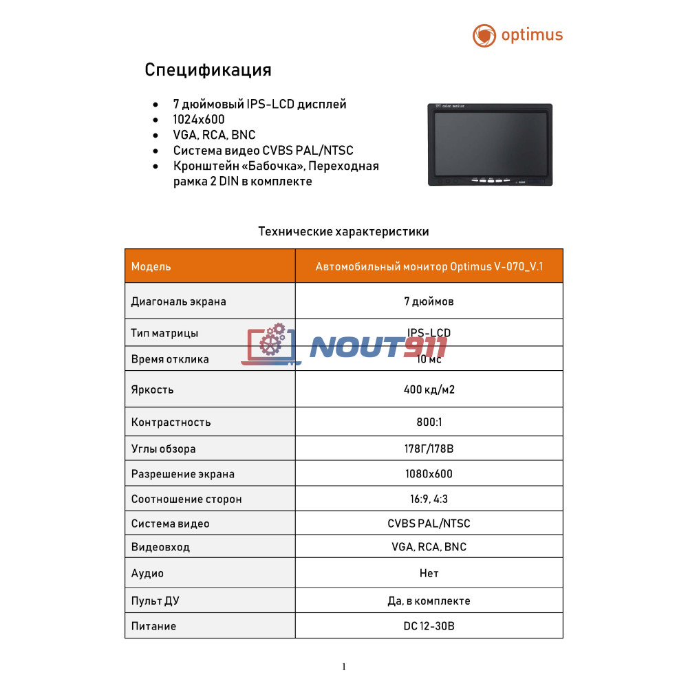 - Автомобильный монитор Optimus V-070 с диагональю 7 дюймов и разрешением 1024x600, обеспечивающий удобный просмотр видео в режиме реального времени.
