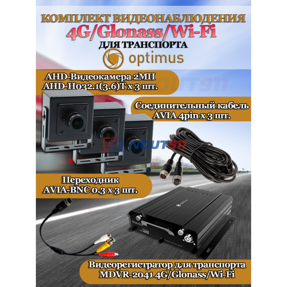 Полная комплектация для безопасности: В комплект входит три AHD-камеры с разрешением 2 Мп и видеорегистратор для транспорта Optimus MDVR-2041 с поддержкой 4G, Glonass и Wi-Fi. Всё, что нужно для установки и работы — в одной коробке.