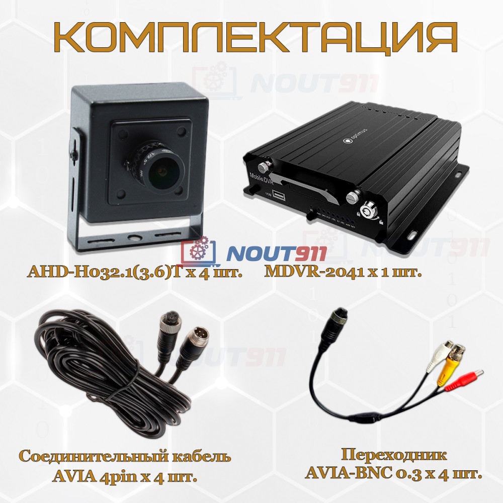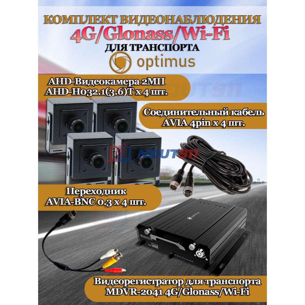 Позаботьтесь о своём транспорте с комплектом видеонаблюдения Optimus на 4 AHD-камеры 2Мп 1080P (MDVR-2041-4G/LTE + 4xAHD-H032.1(3.6)T). Этот передовой комплект создан для обеспечения максимальной безопасности вашей техники, будь то грузовик, автобус или почти любой другой вид транспорта.