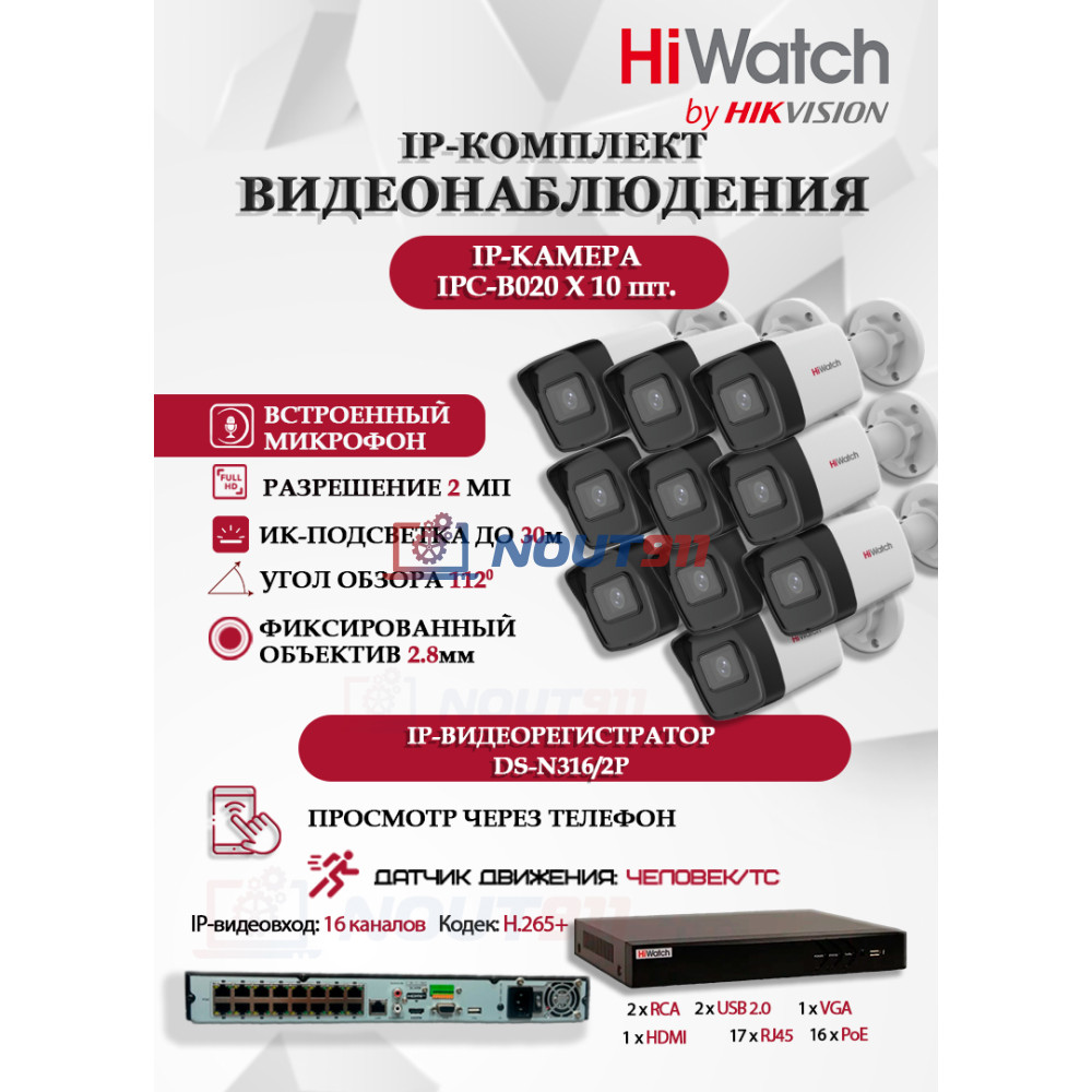 Комплект видеонаблюдения HiWatch на 10 IP камер - Профессиональное решение для вашего бизнеса и дома