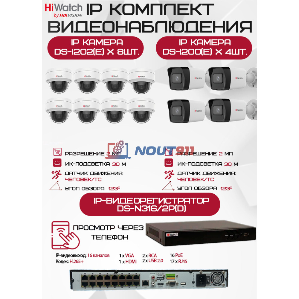 Комплект видеонаблюдения HiWatch на 12 IP камер - 2Мп 1080P - Безупречное решение для безопасности вашего дома и бизнеса