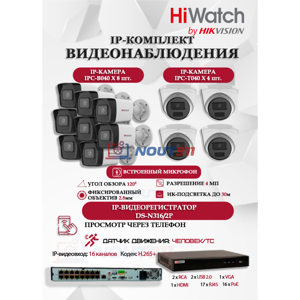 Идеальное решение для комплексной защиты вашего дома или бизнеса – это полный комплект видеонаблюдения HiWatch. Двенадцать мощных IP камер обеспечивают безопасность в высоком разрешении 4Мп (1440P), что позволяет вам видеть все до мельчайших деталей. Этот комплект заменит собой профессиональную службу охраны.