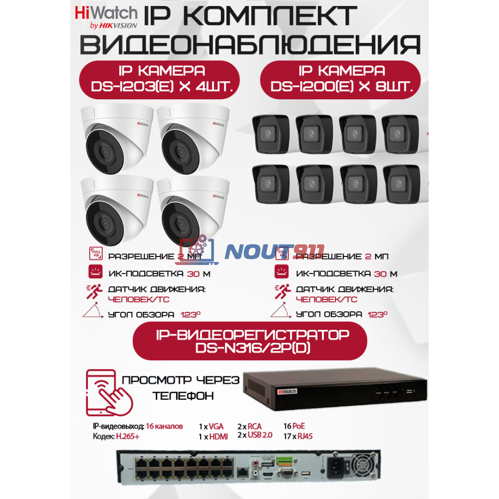 Комплект видеонаблюдения HiWatch на 12 IP камер - Комплексное Решение для Полного Контроля