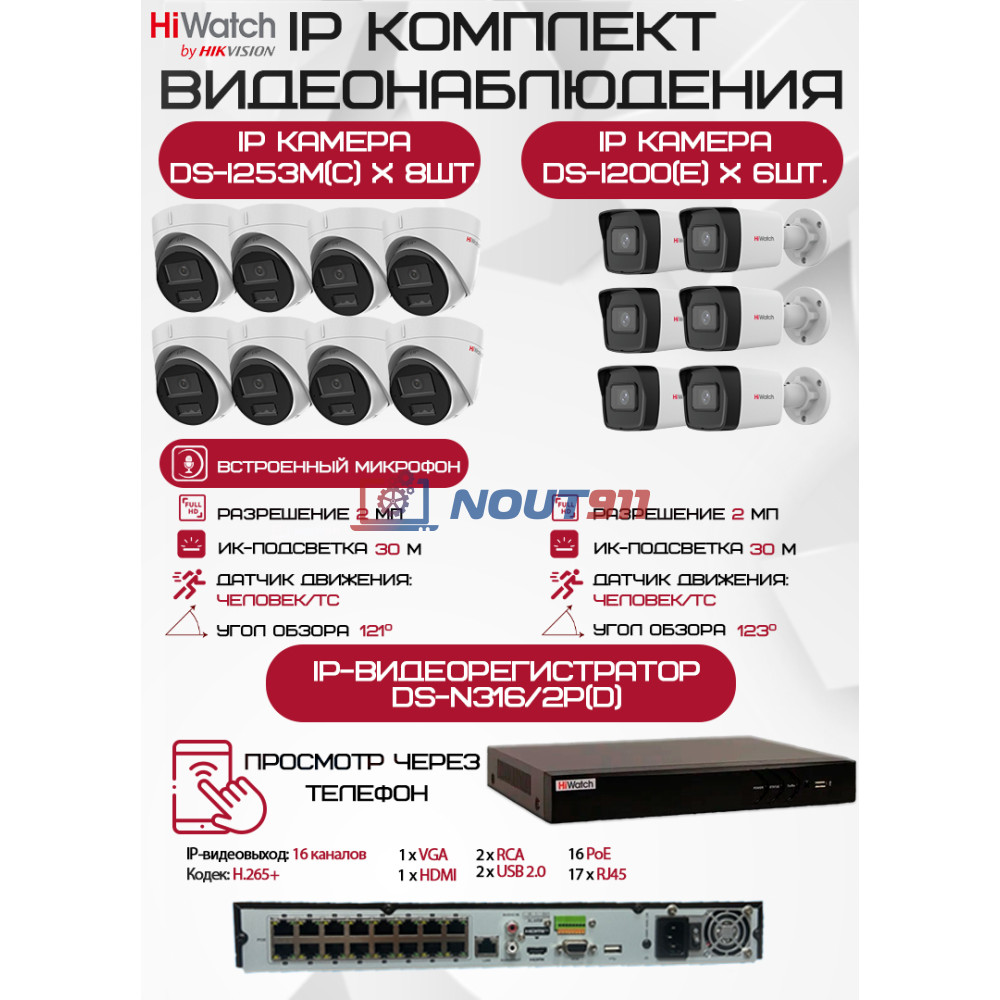 Комплект видеонаблюдения HiWatch на 14 IP камер - 2Мп 1080P: Надежное решение для безопасности