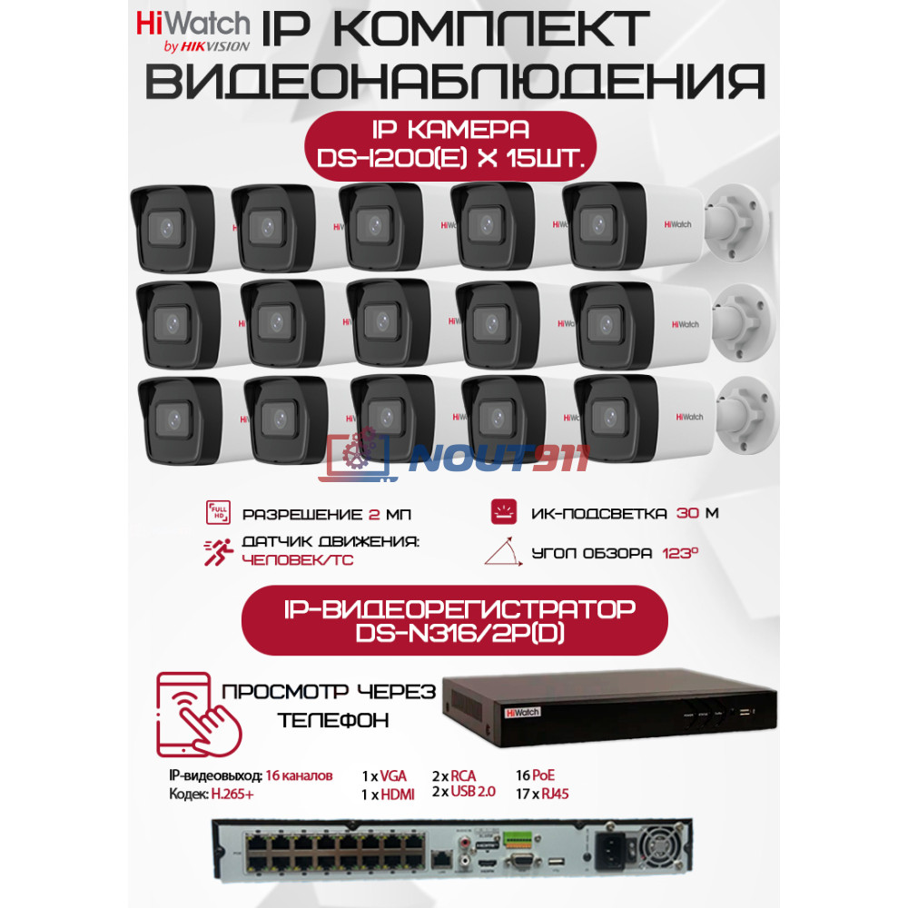Комплект видеонаблюдения HiWatch, альтернативно известный как HiWatch, предлагает продвинутую систему контроля, которая объединяет современные технологии и минималистичный дизайн. Этот комплект включает видеорегистратор HiWatch DS-N316/2P(D) и 15 камер HiWatch DS-I200(E), что создает идеальное решение для внешнего наблюдения.