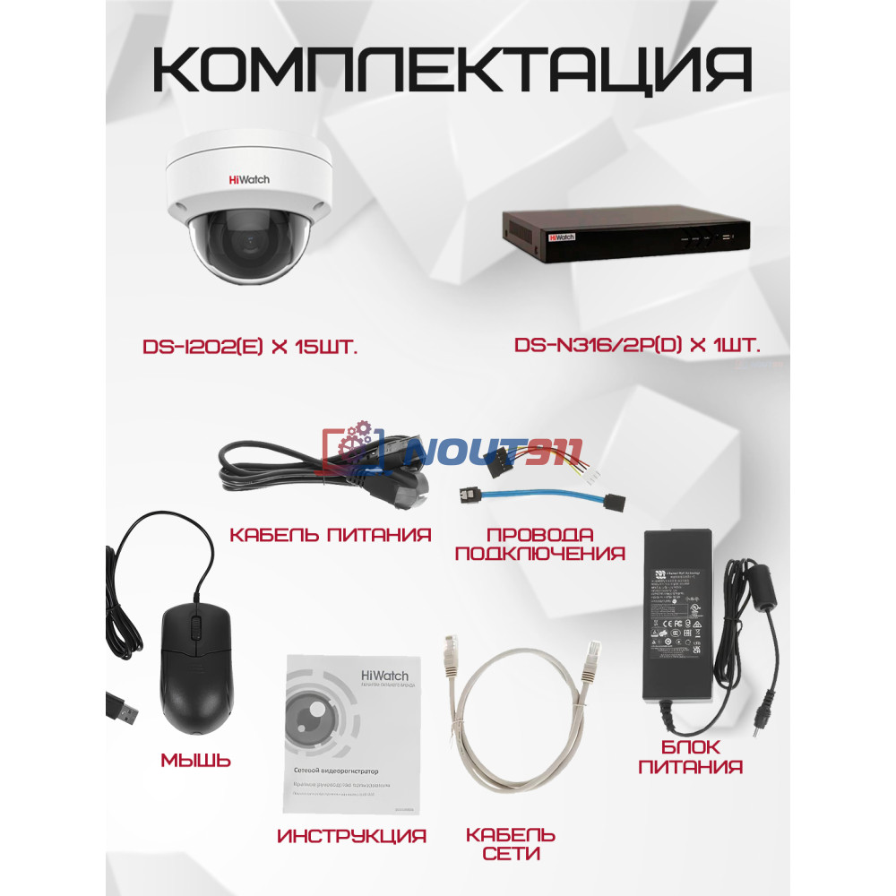 Комплект видеонаблюдения HiWatch на 15 IP камер — 2Мп 1080P (DS-N316/2P(D) + 15хDS-I202(E))