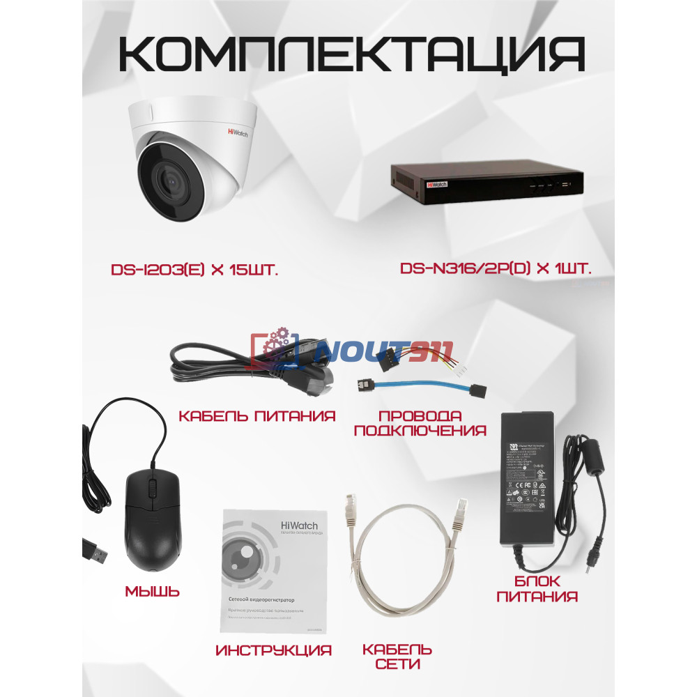 - 15 IP видеокамер HiWatch DS-I203(E)