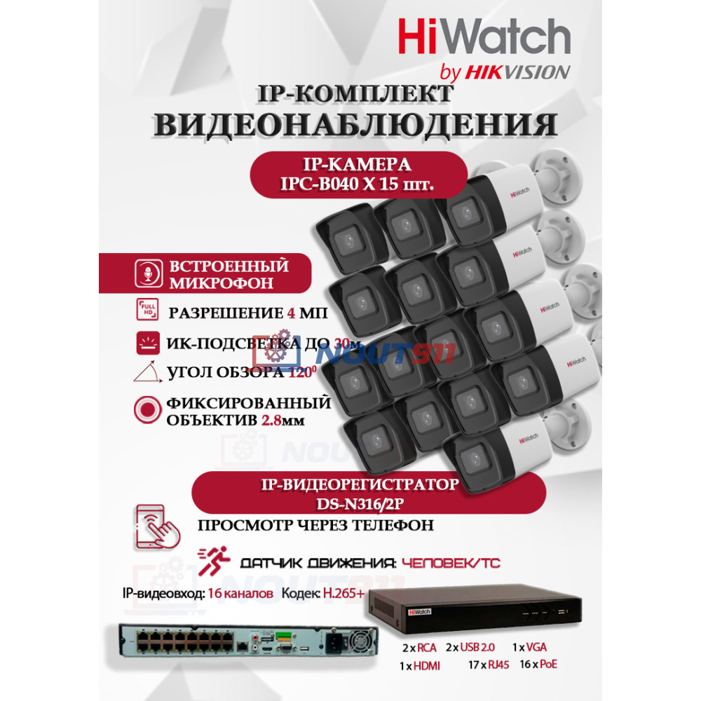 Ищете профессиональное и эффективное решение для видеонаблюдения? Комплект HiWatch на 15 IP камер (DS-N316/2P(D) + 15xIPC-B040(B)) — это идеальный выбор для комплексного контроля и безопасности вашего дома или бизнеса.