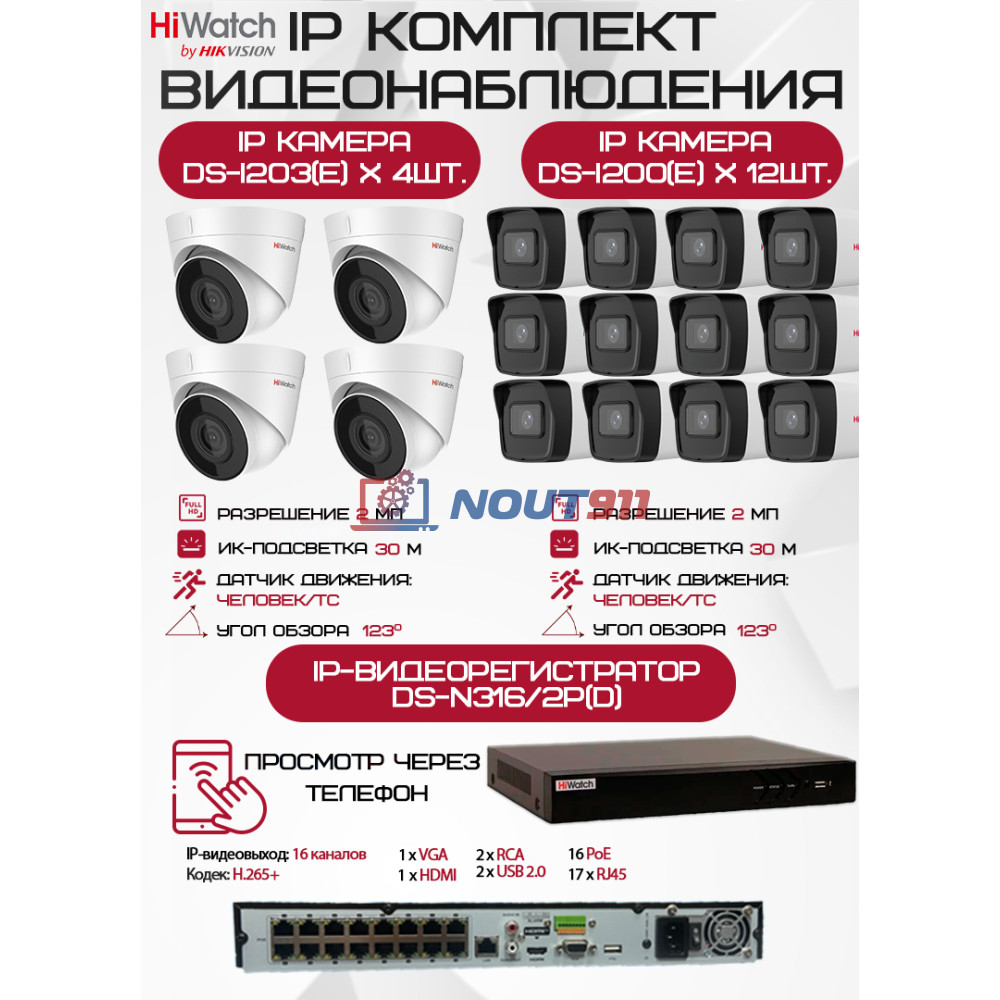 Комплект видеонаблюдения HiWatch на 16 IP камер - 2Мп 1080P: надежность и высокое качество в каждой детали