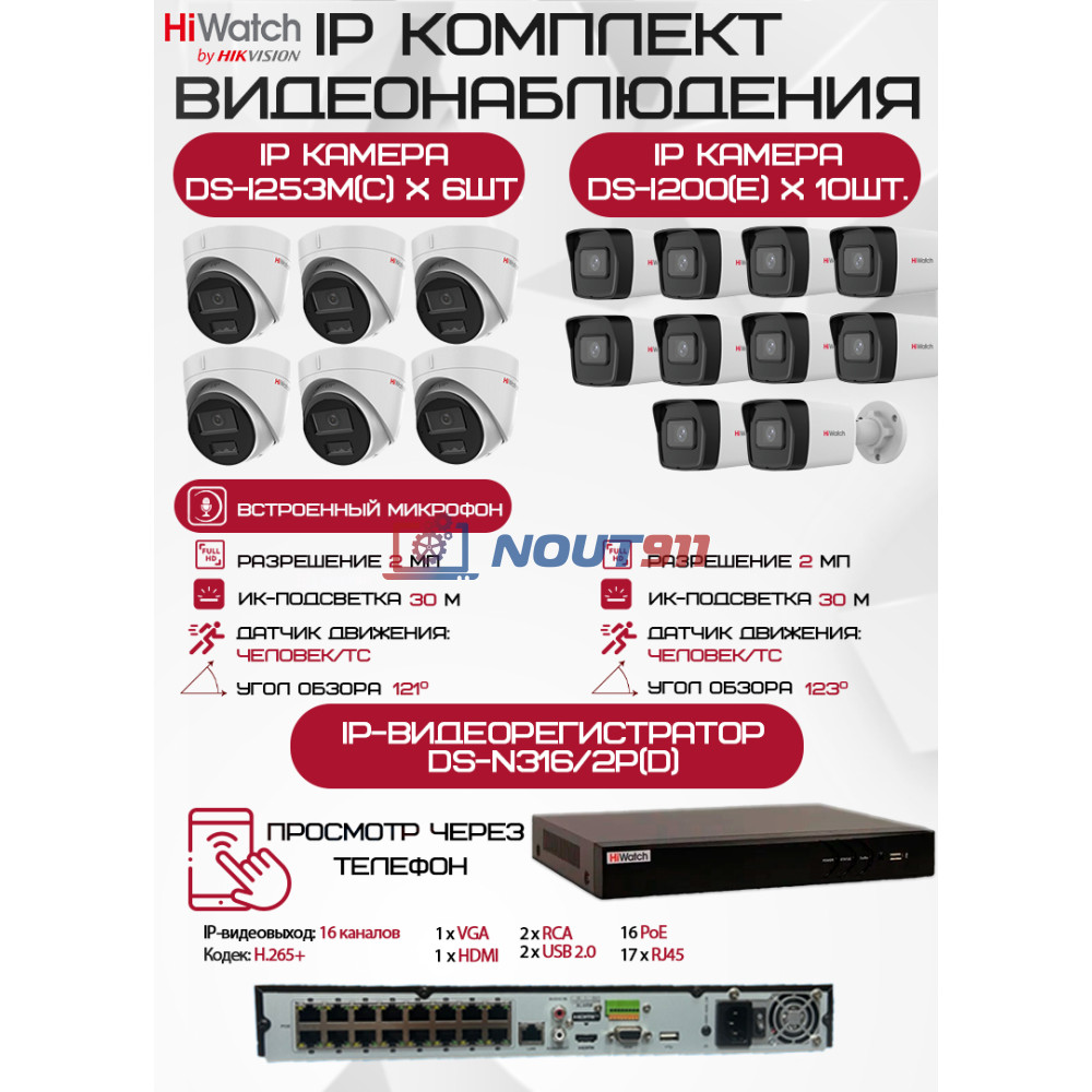 Представляем вашему вниманию комплект видеонаблюдения HiWatch на 16 IP камер модель DS-N316/2P(D) с камерами DS-I200(E) и DS-I253M(C). Этот профессиональный комплект создан для того, чтобы обеспечить надежный контроль и защиту вашего имущества как внутри, так и снаружи помещений. Пусть безопасность станет вашей новой нормой.