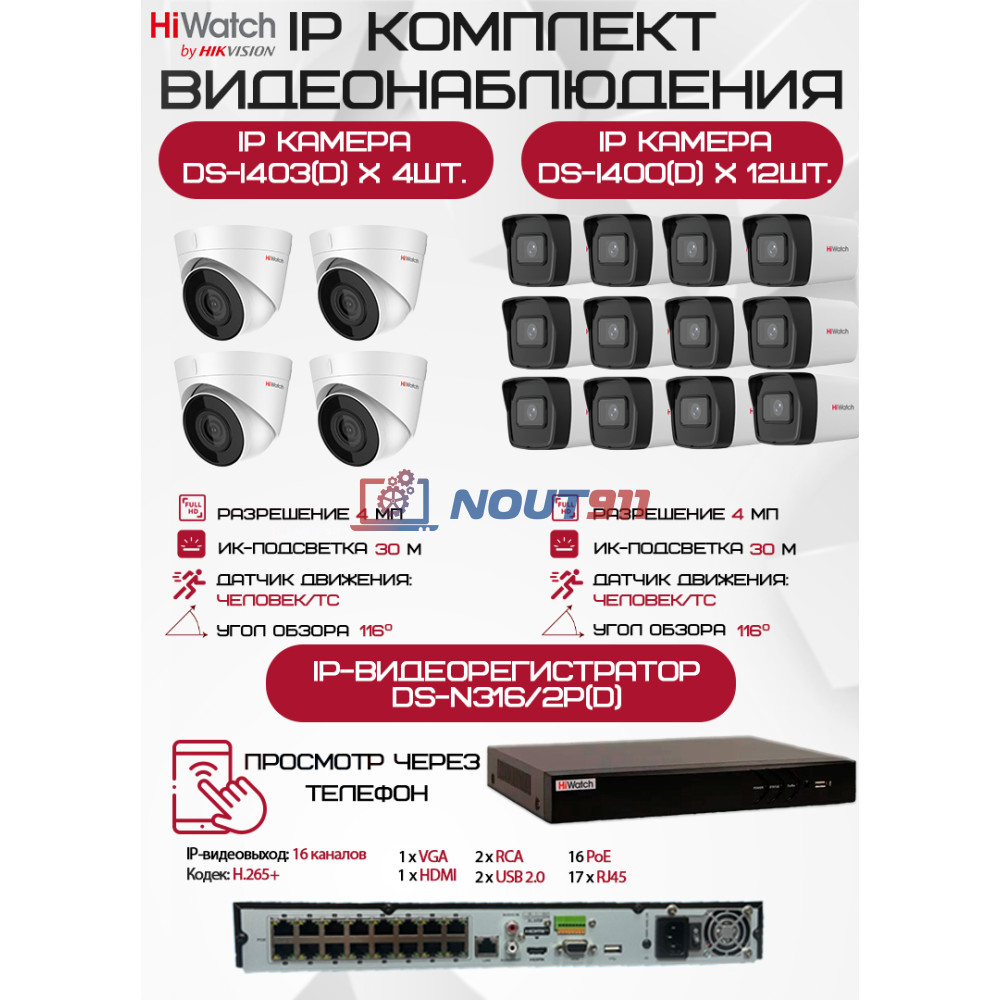 Комплект видеонаблюдения HiWatch на 16 IP камер - 4Мп 1440P является идеальным выбором для комплексного решения безопасности вашего дома, офиса или бизнеса. Надежность, долговечность и высокая производительность делают этот комплект основной частью вашей системы безопасности, на которую можно положиться.