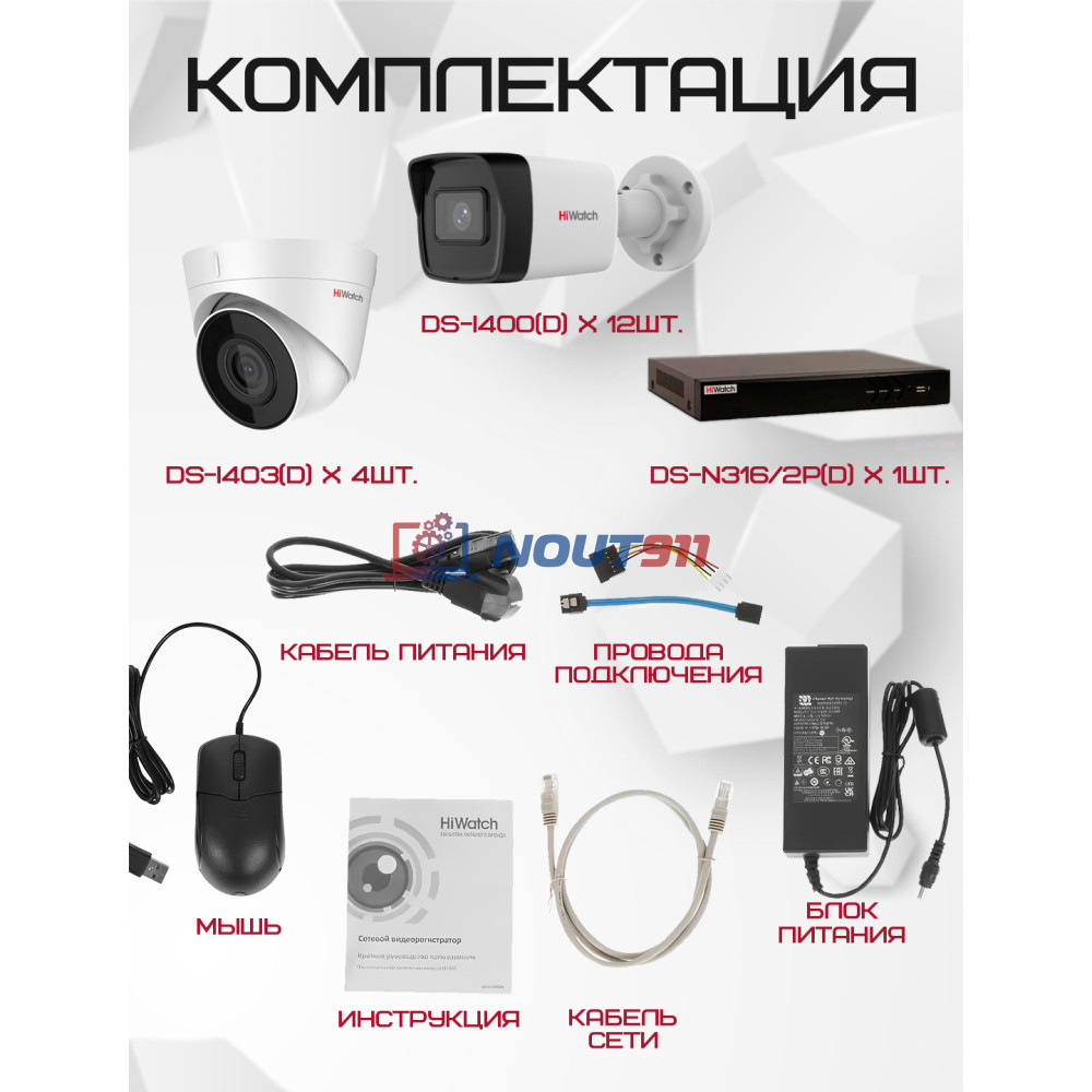 Комплект видеонаблюдения HiWatch на 16 IP камер - 4Мп 1440P: Максимальная безопасность Вашего пространства