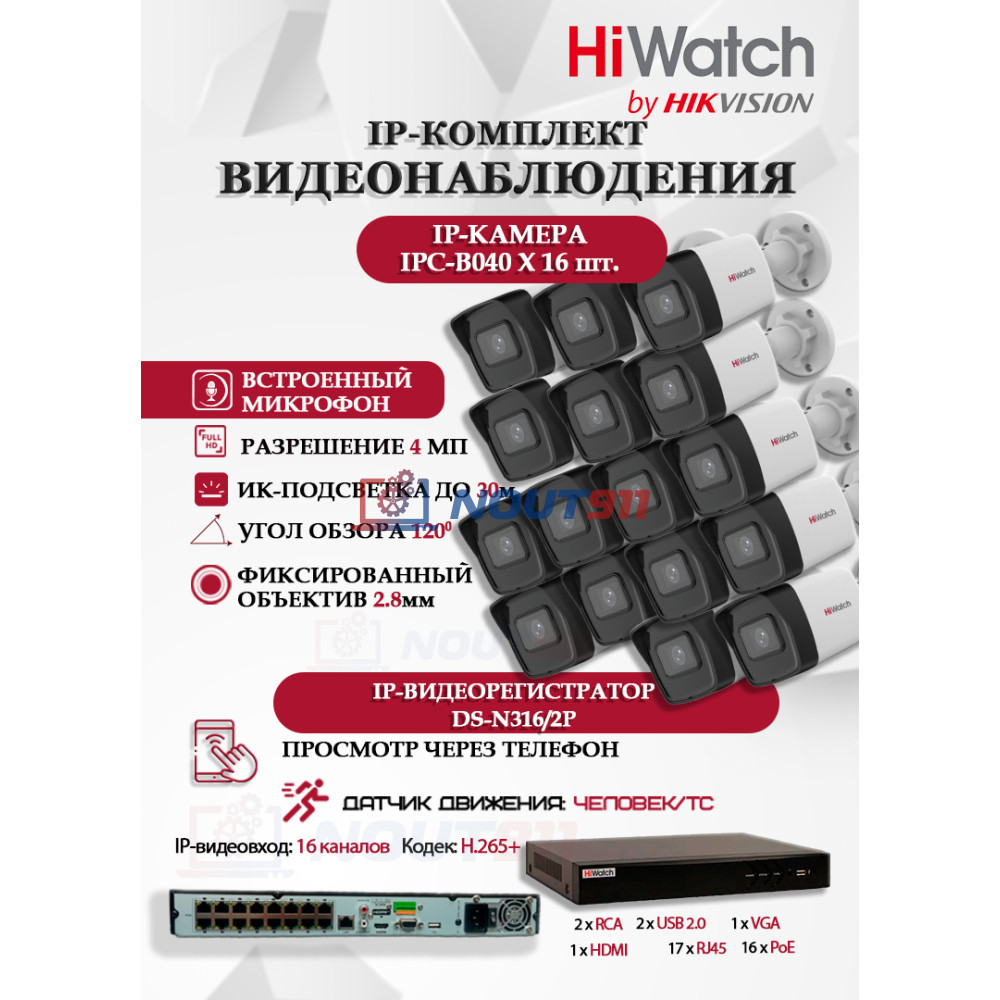 Комплект видеонаблюдения HiWatch на 16 IP камер – полный контроль за безопасностью