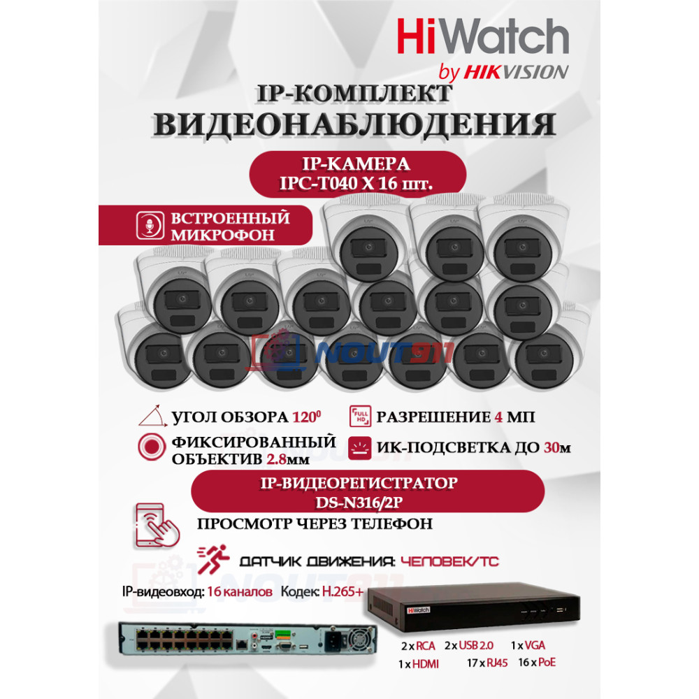 - IP видеокамеры HiWatch IPC-T040(B) — 16 шт