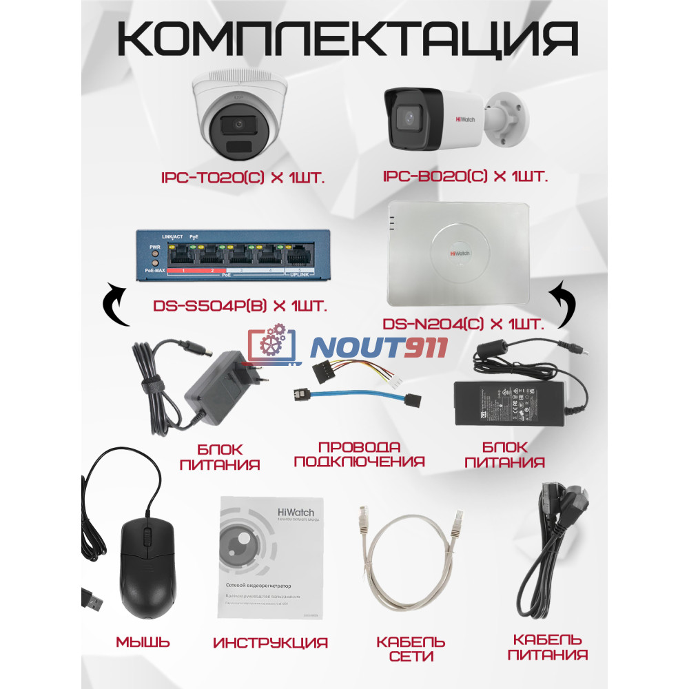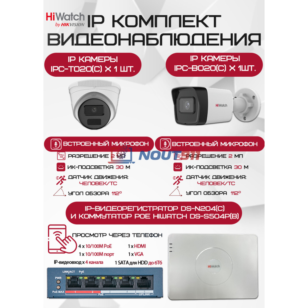 Система видеонаблюдения является незаменимым инструментом для обеспечения безопасности как в домашних, так и в коммерческих условиях. Комплект видеонаблюдения HiWatch с артикулом DS-N204(C) и камерами IPC-B020(C) и IPC-T020(C) идеально подходит для установки на малых и средних объектах. Благодаря передовым технологиям и понятной комплектации, набор станет надежным помощником в контроле за территорией.