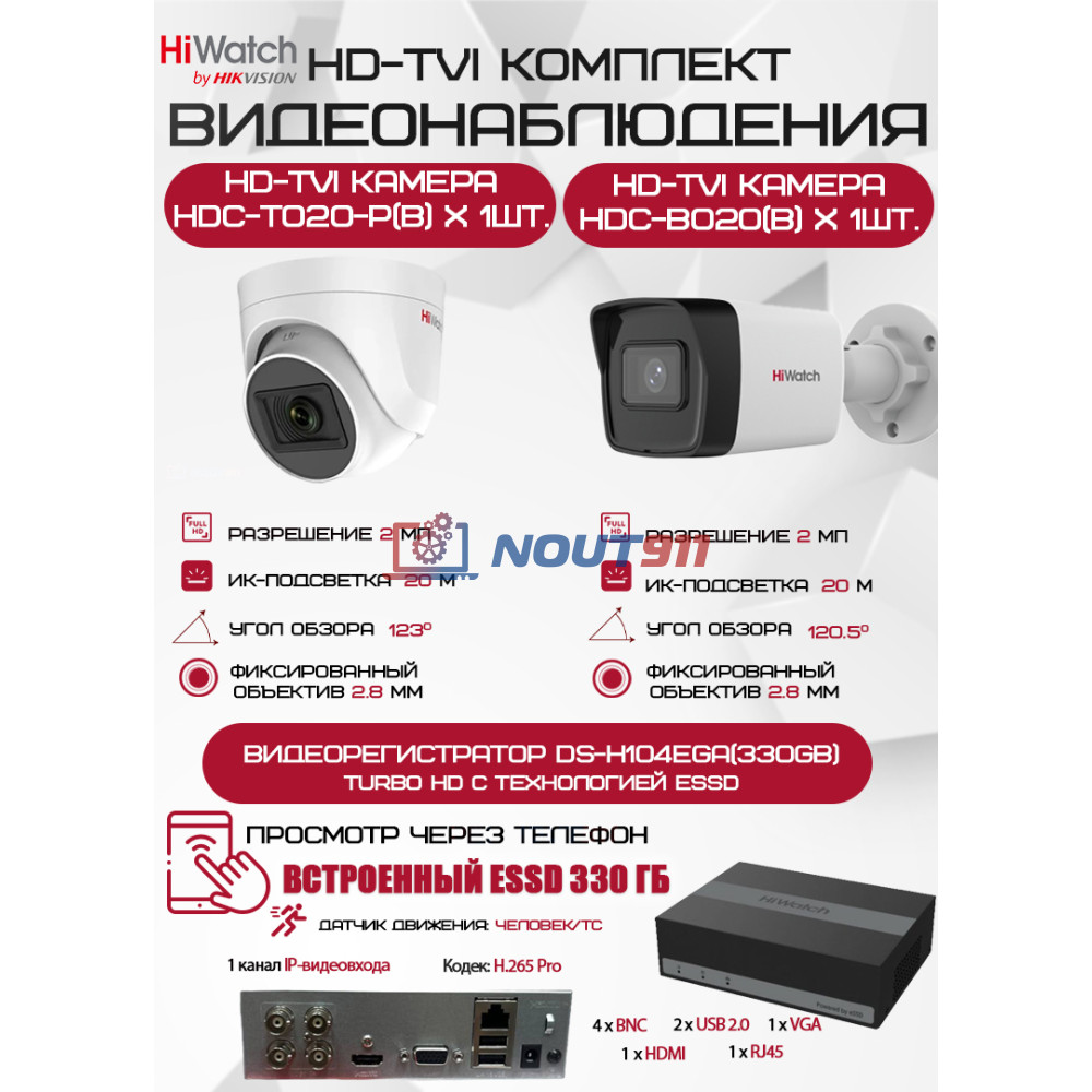 Представляем комплект видеонаблюдения HiWatch, разработанный специально для обеспечения надежной безопасности как вашего дома, так и офиса. Этот комплект включает в себя две мощные HD-TVI камеры высокого разрешения и видеорегистратор, обеспечивающий умное управление и запись видео.