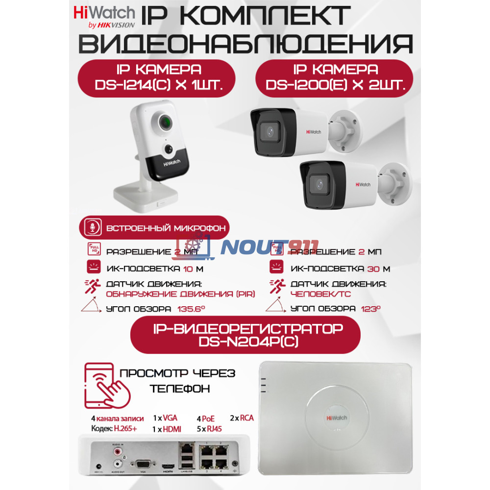 Комплект видеонаблюдения HiWatch на 3 IP камер - Высокотехнологичная система безопасности для вашего дома и офиса