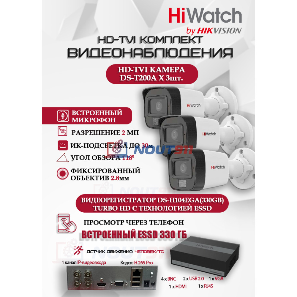 В тревожные времена важно чувствовать себя в безопасности. Комплект видеонаблюдения HiWatch с 3 HD-TVI камерами, модель DS-H104EGA(330GB) + 3xDS-T200A, это высокотехнологичное решение для вашего дома или бизнеса. Мы заботимся о вашей безопасности, предоставляя качественное и доступное оборудование.