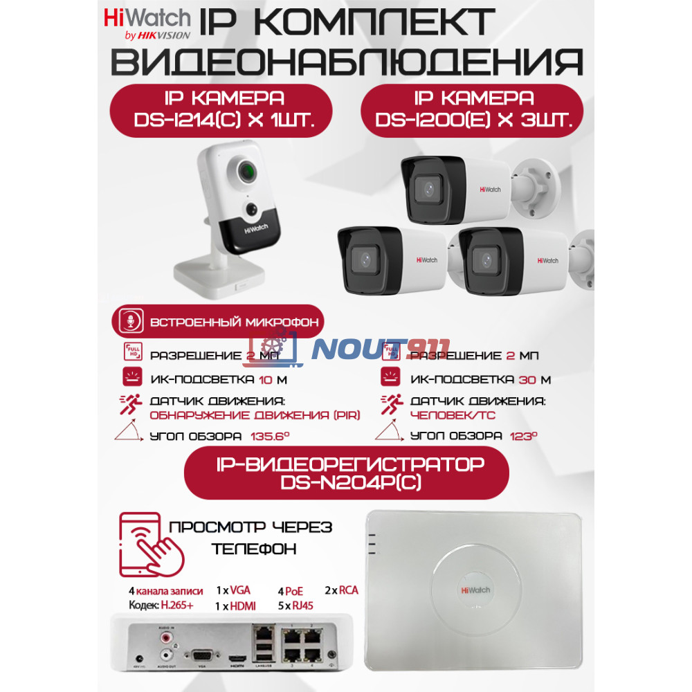 В современном мире обеспечение безопасности дома или бизнеса становится приоритетной задачей. Мы представляем комплект видеонаблюдения HiWatch, состоящий из 4 IP камер с разрешением 2Мп (1080P), включающий модели DS-N204P(C), 3xDS-I200(E) и 1хDS-I214(C). Этот комплект — идеальное решение для тех, кто ищет надёжные и современные технологии, способные гарантировать безопасность как в помещении, так и на улице.