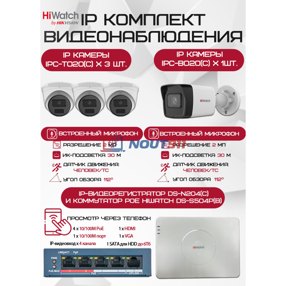 Комплект видеонаблюдения HiWatch на 4 IP камеры