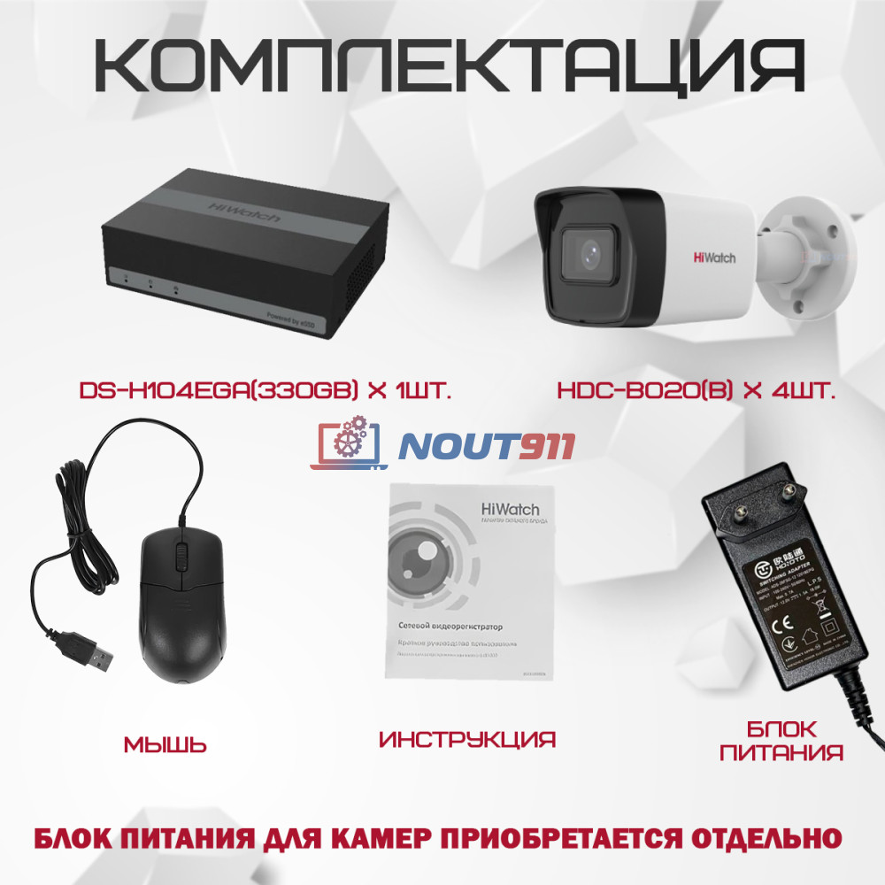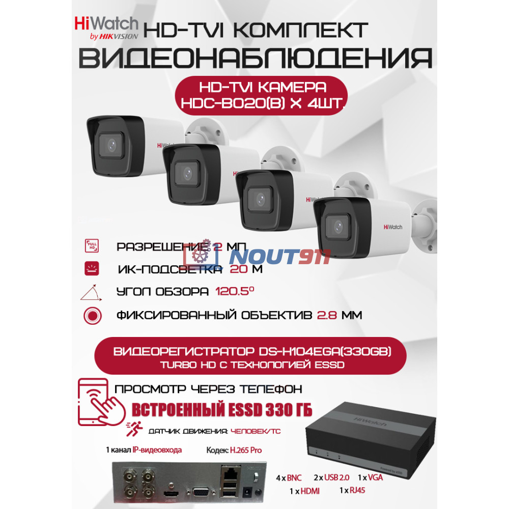 - Модель видеорегистратора: HiWatch DS-H104EGA(330GB).