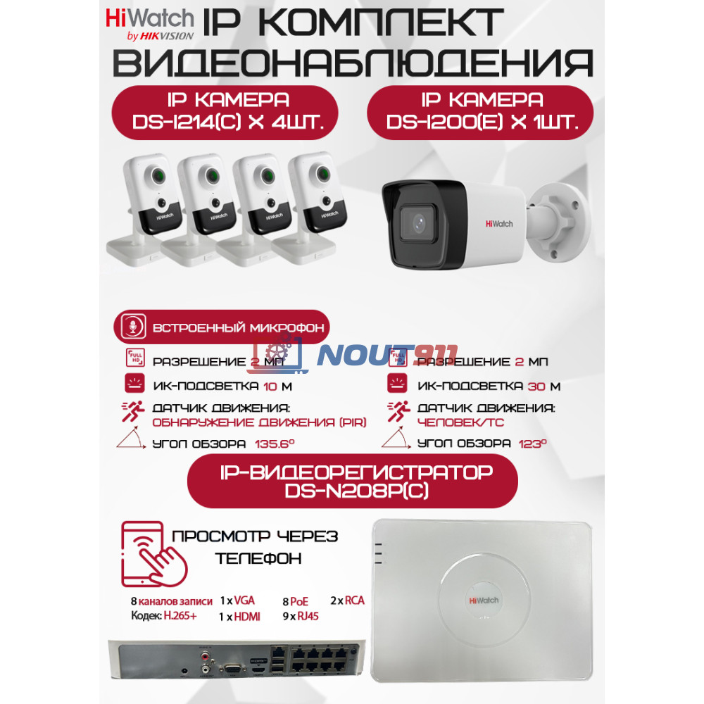 Ваш дом или офис нуждаются в надежной системе безопасности? Комплект видеонаблюдения HiWatch (изготовитель: ХайВотч) на 5 IP камер с разрешением 2Мп 1080P — это продвинутое решение по охране вашей собственности. Полная комплектация, включающая 5 камер и видеорегистратор, позволяет охватить все важные зоны и постоянно следить за происходящим в режиме онлайн.