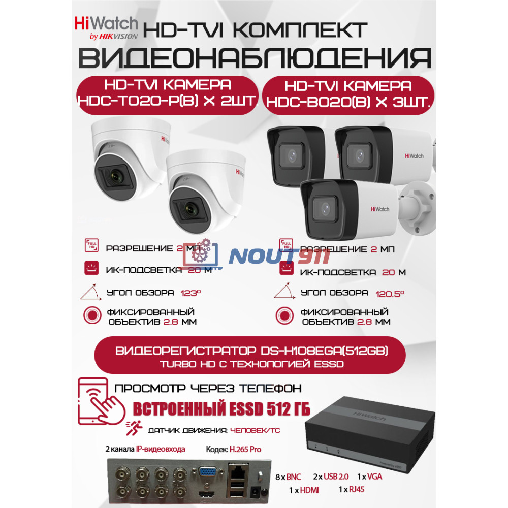 Комплект видеонаблюдения HiWatch — это оптимальное решение для организации надежного мониторинга. Удобство, продуманная конфигурация и высокая производительность делают этот комплект идеальным для использования как в жилых, так и в коммерческих пространствах. Включая в себя пять HD-TVI камер и мощный видеорегистратор, система обеспечивает качественное изображение и высокая степень защиты.