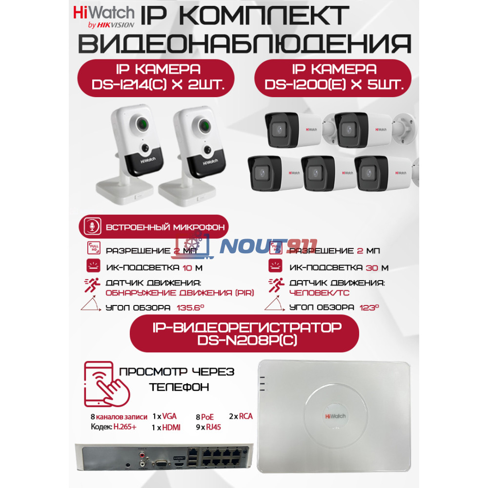 Комплект видеонаблюдения HiWatch на 7 IP камер - идеальный выбор для безопасности вашего дома или бизнеса