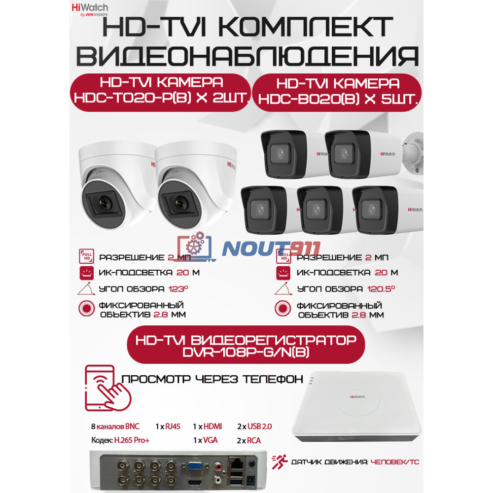 Комплект видеонаблюдения HiWatch (ХайВатч) на 7 HD-TVI камер - 2МП 1080P — это передовое решение для обеспечения безопасности вашего имущества. Этот набор объединяет в себе надежные технологии и качество изображения высочайшего разрешения, чтобы вы могли быть уверены в полной защите вашего пространства.