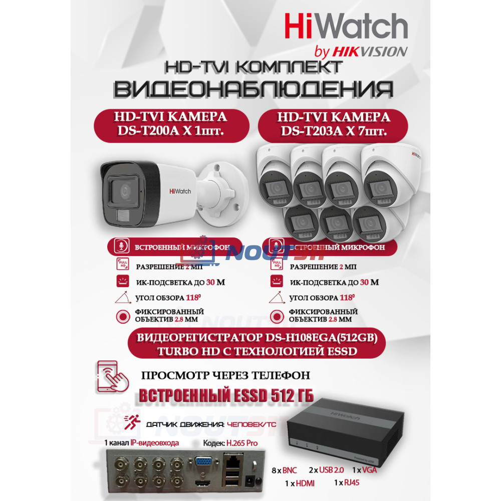 Комплект видеонаблюдения HiWatch на 8 HD-TVI камер - ваш надежный контроль и безопасность!
