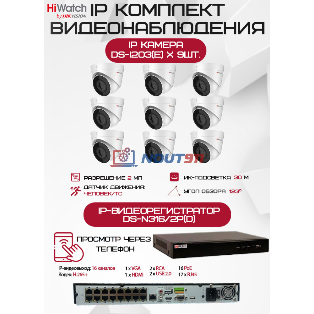 - 9 IP видеокамер HiWatch DS-I203(E)