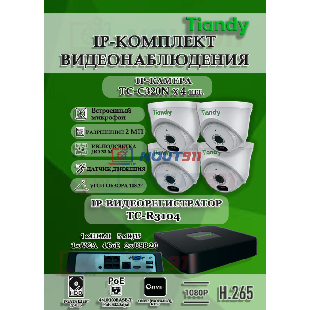 Комплект видеонаблюдения Tiandy на 4 IP камеры - Полная защита вашего пространства