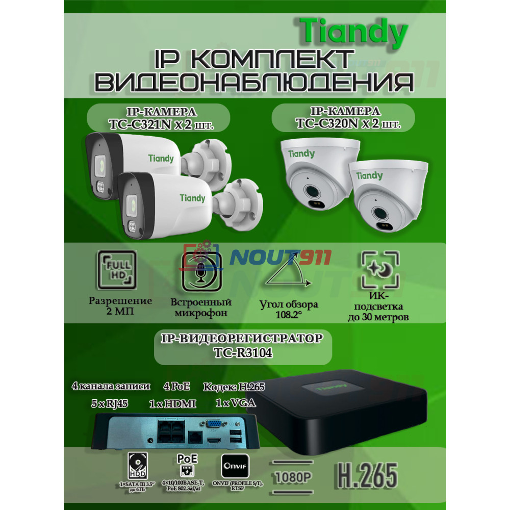 Комплект Видеонаблюдения Tiandy (Тианди) на 4 IP Камеры - Безопасность и Уверенность для Вашего Дома и Офиса