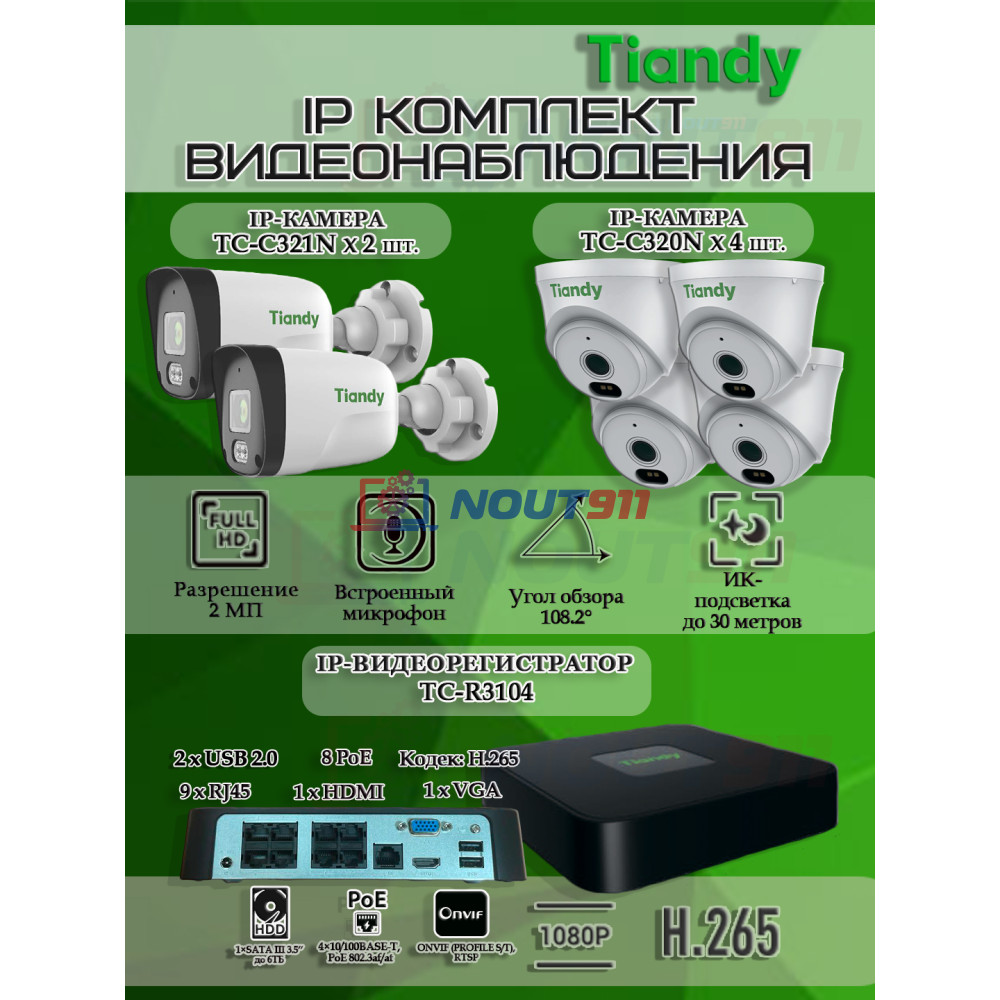 Комплект видеонаблюдения Tiandy на 6 IP камер - надежность и безопасность высокого уровня