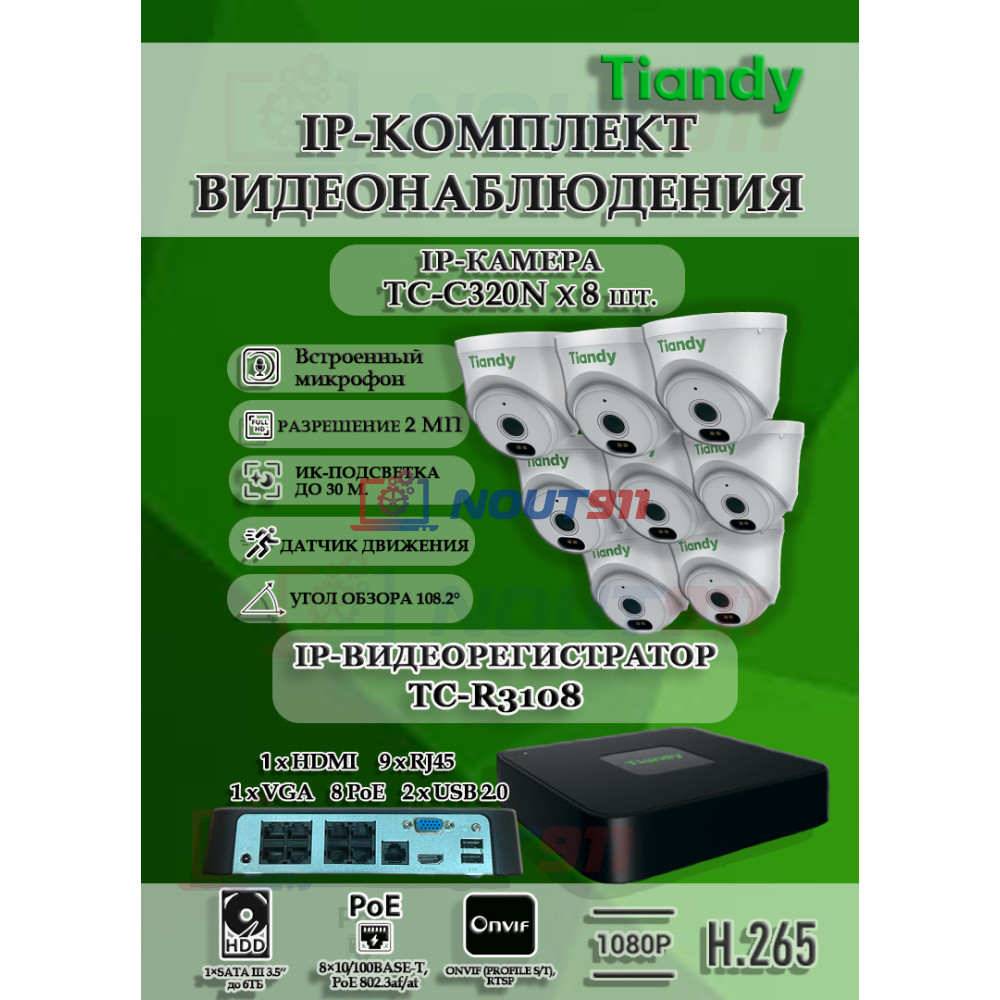 - IP видеокамера Tiandy TC-C320N — 8 шт.