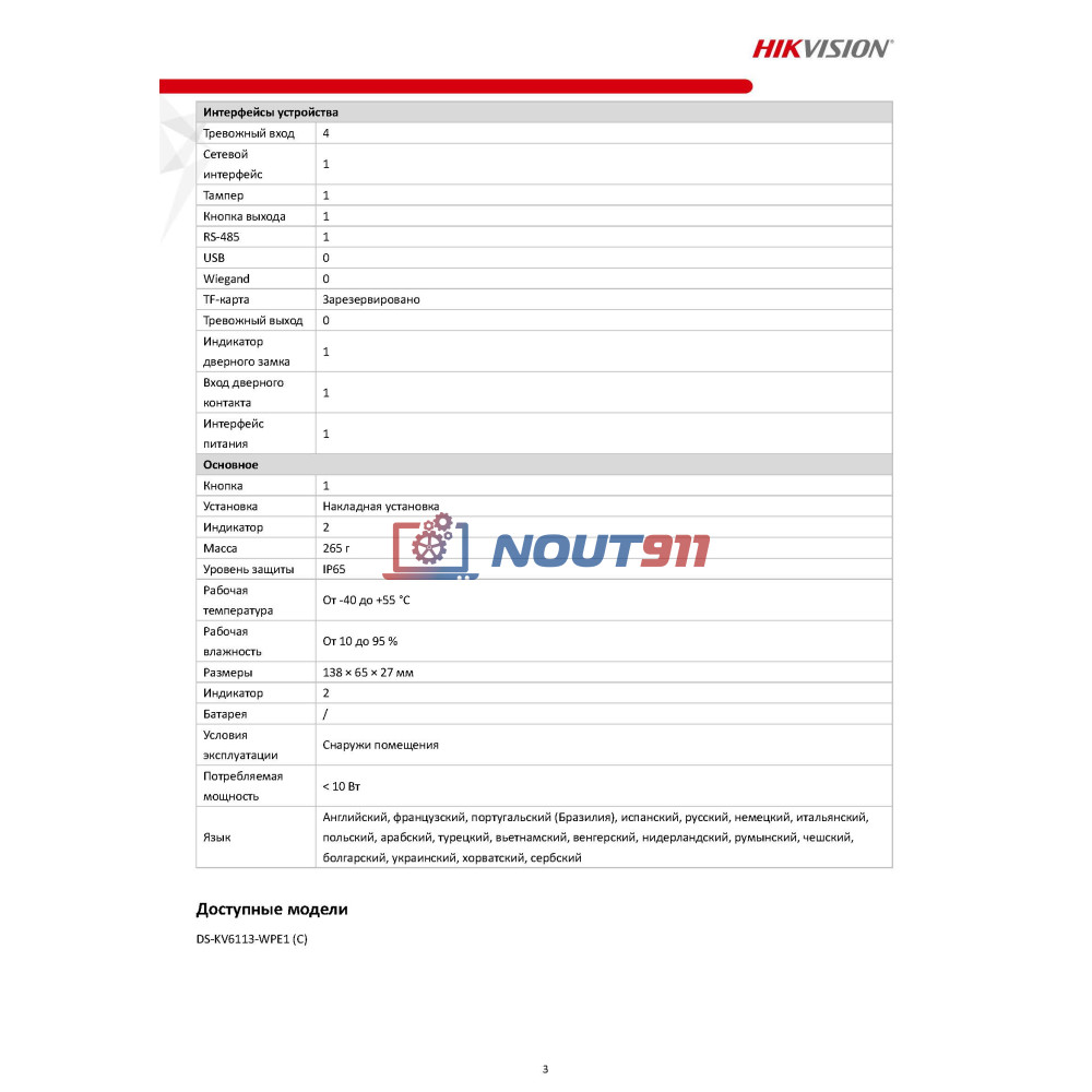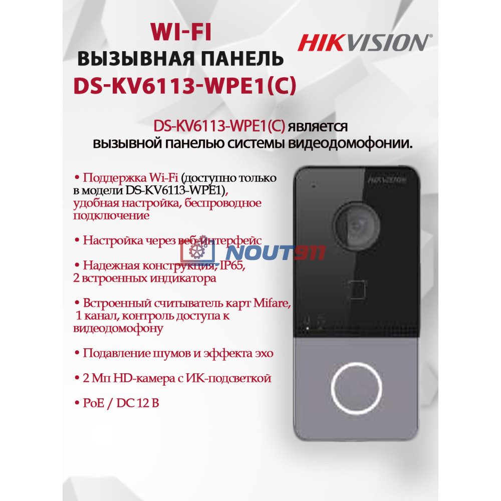 Вызывная панель Hikvision DS-KV6113-WPE1(C)